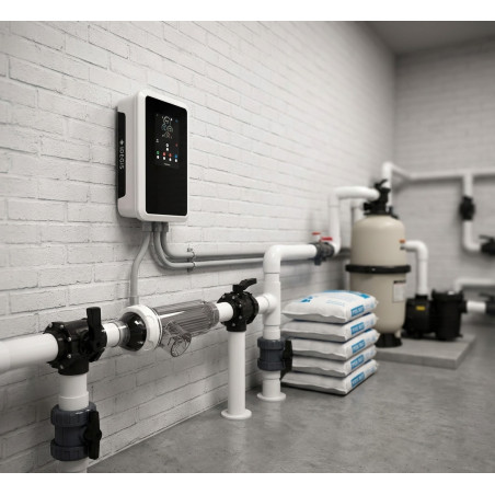 Il modello Domotic D-42 S2 si distingue per la sua robusta capacità di produzione, raggiungendo i 40 grammi all'ora (g/h) . Questa potenza è perfettamente calibrata per garantire una clorazione costante e adeguata in piscine di grandi dimensioni, fino a 120 m³. Il suo sistema intelligente si adatta alle esigenze della vostra piscina, garantendo che i livelli di disinfettante rimangano ottimali senza la necessità di un intervento manuale costante. L'integrazione dell'elettrolisi del sale non solo migliora la qualità dell'acqua, ma riduce anche le irritazioni oculari e cutanee associate al cloro chimico tradizionale.