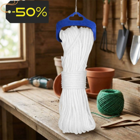 Matassa di cordino in poliestere bianco da 2,75 mm, lunga 10 metri , ideale per molteplici applicazioni in casa, giardino, fai da te e usi professionali.