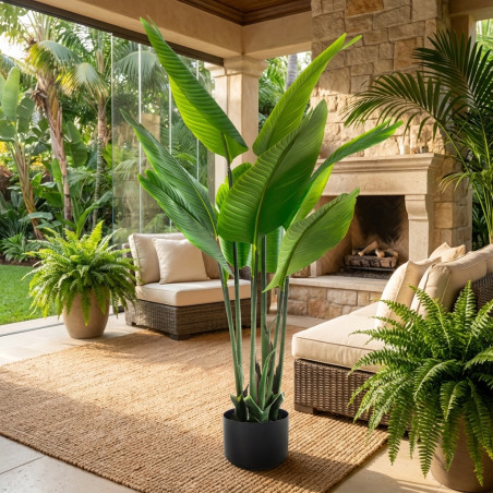 Aggiungete un tocco di esotismo e raffinatezza senza tempo al vostro arredamento con questa splendida pianta artificiale di Strelitzia (Uccello del Paradiso) alta 150 cm.
