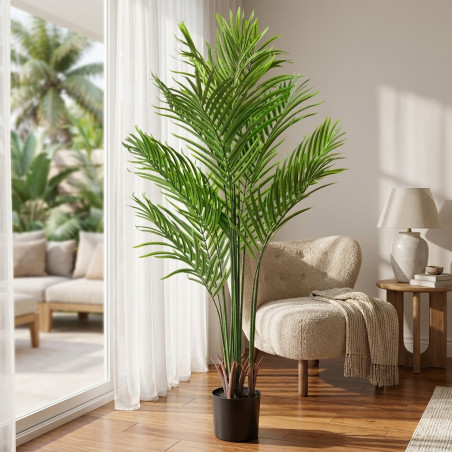 La palma viene presentata in un elegante vaso con base , pronta per essere collocata direttamente nel luogo desiderato. La sua stabilità e il suo realismo la rendono difficilmente distinguibile da una pianta vera, offrendo la massima versatilità decorativa.