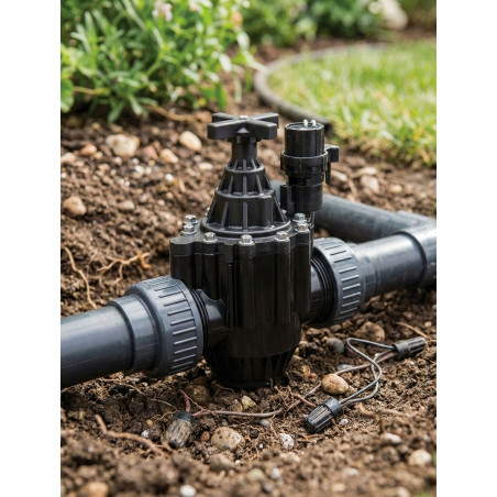 L'elettrovalvola si installa nel pozzetto di irrigazione collegando l'elettrovalvola al programmatore elettrico.