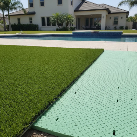 Shock Pad 1 x 25 metri. Superfici con maggiore sicurezza e protezione. Eccellente ammortizzazione e assorbimento degli urti. Consigliato per campi sportivi in erba di altezza ridotta. Prodotto in Spagna, prodotto di alta qualità e durevole.