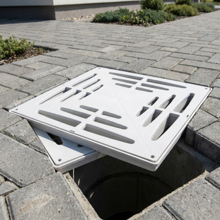 Copertura in polipropilene di alta qualità. Dimensioni esterne: 38 x 38 cm. Prodotto di alta qualità e durevole. Consente il passaggio pedonale.