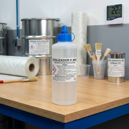 Viene utilizzato miscelandolo con resina poliestere insatura in presenza di acceleranti a base di sali di cobalto.