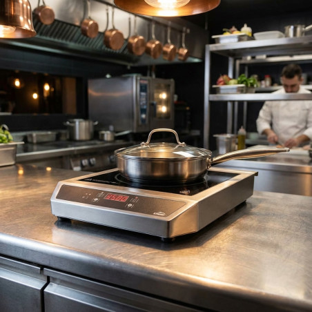 Piano cottura a induzione portatile per uso professionale, con grande capacità di riscaldamento elettromagnetico, soddisfa diverse possibilità culinarie.