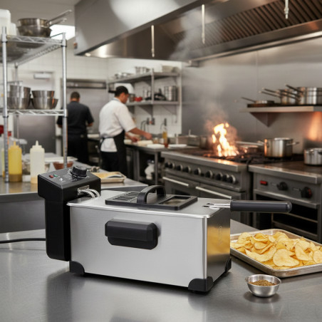 Friggitrice Thulos da 3 litri: cuoci i tuoi piatti fritti preferiti in modo rapido e sicuro. Potenza di 2000 W, termostato regolabile e design in acciaio inox per risultati perfetti e facile pulizia.