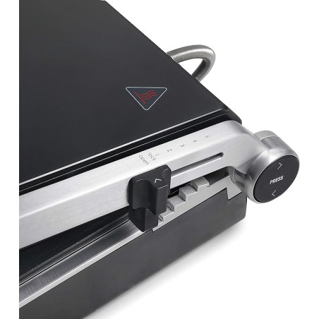 Griglia robusta e di alta qualità per uso domestico e professionale. Due zone di cottura ideali per grigliare carne, pesce, frutti di mare, hamburger o verdure. Piastre in alluminio pressofuso antiaderenti (senza PFOA) completamente rimovibili (con pulsante di sgancio) per una facile pulizia. Vassoio raccogli-grasso. Cottura uniforme garantita su tutta la superficie. Inclinabile di 180°. Altezza e potenza regolabili e persino un timer da 30 minuti.