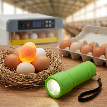 Ovoscopio LED leggero, versatile, compatto e facile da trasportare . La sua tecnologia LED garantisce una lunga vita utile. Lampada per controllare la fertilità. Potenza 3W - 90 lumen. Include batterie AAA.