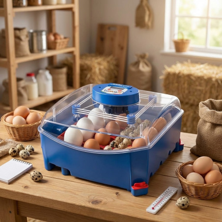 Incubatrice automatica professionale brevettata a ridotto consumo energetico. L'incubatrice è adatta per incubare **uova** di pollo, fagiano, faraona, quaglia, pernice, anatra, anatra, oca, tacchino, pavone, coturnice, piccione, colombaccio, uccelli esotici e rapaci. Capacità: 0-24 uova o 96 uova piccole (tipo quaglia), grazie alle celle portauova universali brevettate.