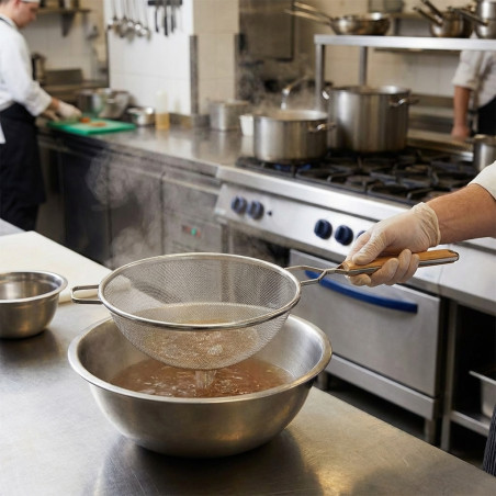 La doppia maglia garantisce una filtrazione più fine, trattenendo le particelle più piccole che un colino standard lascerebbe passare. Il risultato sono salse, brodi e puree dalla consistenza molto più fine e dall'aspetto professionale.