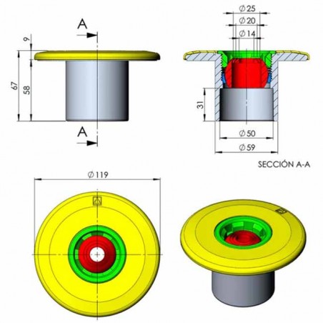 La sfera dell'ugello viene fornita preincisa con un numero di diametri (14, 20 e 25).
