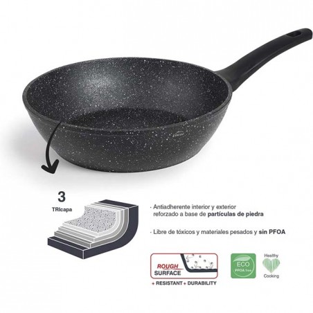 Rivestimento antiaderente TRIlayer rinforzato con particelle a base di pietra, privo di materiali tossici e pesanti. Ecologico e senza PFOA.