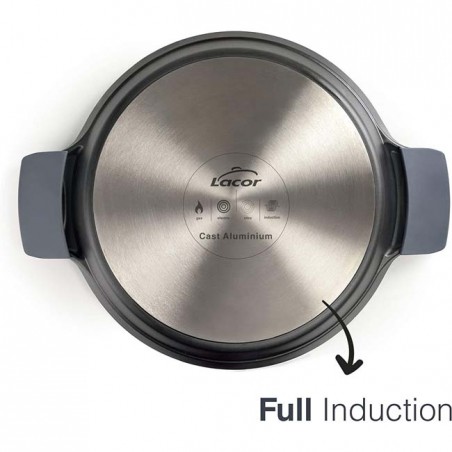 Realizzato in alluminio pressofuso spesso e di alta qualità e rinforzato con particelle a base di pietra. Massima resistenza ai graffi, durata e usura. Base diffusore full induction. Antiaderente a tre strati di altissima qualità, privo di materiali tossici e pesanti; Ecologico e senza PFOA. Numero di porzioni: 5. Include manici in silicone di alta qualità, termoisolante, altamente resistente ed ergonomici per una presa sicura sulla padella per paella. Compatibilità: tutti i tipi di piani cottura (inclusa induzione) e forno. Non adatto alla lavastoviglie.