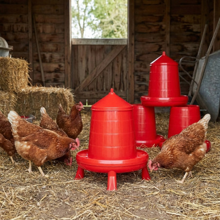 Set di 5 Mangimi con Piedi per Uccelli e Galline da 4 Kg | 30x30x50 cm | Antigaspi | Appesi o Fissi | Colore Rosso