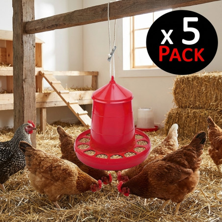 Tramoggia in plastica per polli e altri volatili. Realizzati con plastica altamente resistente che permette loro di essere leggeri. Possono essere appesi senza problemi. Rosso.