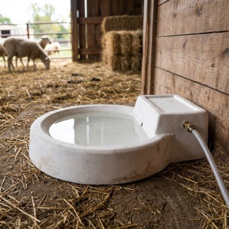 L'abbeveratoio automatico in cemento funziona con un galleggiante che regola il livello dell'acqua, mantenendola sempre piena.