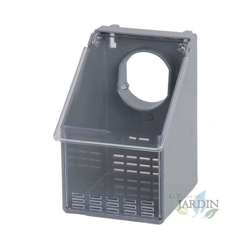 Mangiatoia di alta qualità adattabile a qualsiasi gabbia, è universale. Misure 9,5 x 11 x 14,5 cm. Prodotto in Spagna con materiale plastico ultra resistente. Peso approssimativo 0,25 Kg. Colore grigio.