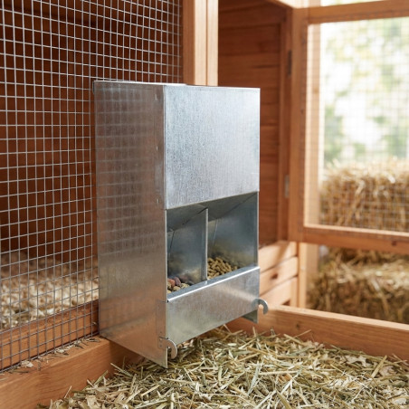 Tolvilla dispensadora metálica para conejos con dos compartimentos