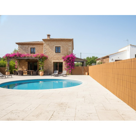 Ostacolo bifacciale in PVC color cioccolato 1.600 gr 2 x 3 metri. Realizzato con bacchette in plastica unite da filo di nylon ogni 10 cm e linea di incollaggio alle estremità. Mimetizzazione ottimale in giardini, terrazzi e balconi. Facile installazione e pulizia. Protezione anti-UV.