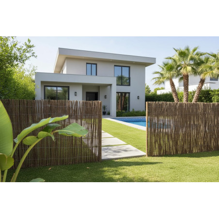 Recinzione in vimini naturale spessa 1 x 5 m. È ideale per nascondere, ombreggiare o delimitare diverse aree del nostro ambiente. È cucito con filo zincato da 10 cm. distanza tra i fili e ha una misura di 1 x 5 metri. Con un livello di occultamento dell'85%, questo prodotto spagnolo di alta qualità della marca Suinga è un'ottima opzione.