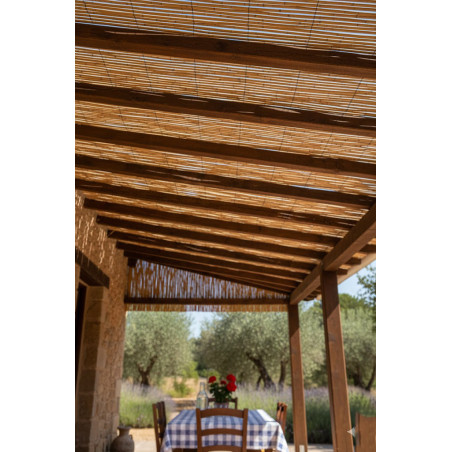Materiale 100% naturale con finitura rustica e decorativa – Realizzato con canne intere di alta qualità , accuratamente selezionate per garantire un aspetto uniforme ed estetico. La sua finitura naturale si integra perfettamente in qualsiasi ambiente esterno, donando calore e un tocco rustico che impreziosisce ogni spazio.