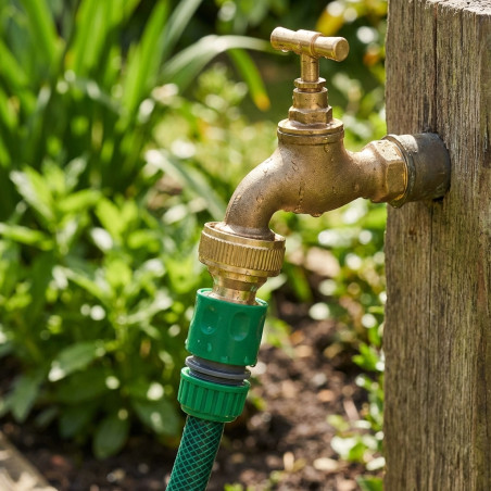 Adattatore per rubinetto 3/4 filetto femmina. Maglia universale con guarnizione di sicurezza. Realizzato in ottone, adattabile a tutti i connettori rapidi in commercio.