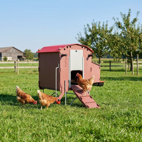 Questo pollaio è la soluzione perfetta per chi cerca un piccolo pollaio mobile , che possa ospitare 3-5 galline , o un pollaio con un grande abbeveratoio . La sua struttura compatta (74x57x105 cm) si adatta perfettamente a cortili e giardini di medie dimensioni, offrendo la capacità ideale per la produzione di uova fresche in casa.