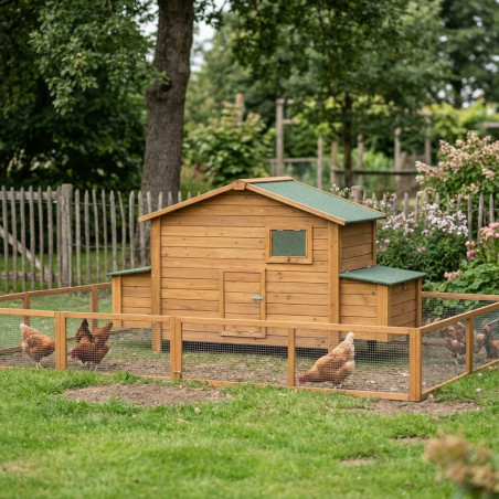 Il nido rialzato ha dimensioni di 191x89x110 cm e offre ampio spazio alle galline.