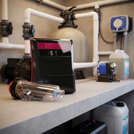 Cloratore salino dal design compatto per piscine residenziali di facile installazione e movimentazione. Go Salt è l'elettrolisi del sale alla portata di tutti grazie ai vantaggi che offre ad un prezzo molto competitivo. Cella autopulente mediante inversione di polarità. Disponibile con controllo del pH integrato consigliato per il trattamento completo della qualità dell'acqua. I modelli pH includono anche la pompa dosatrice peristaltica, la sonda e le soluzioni di calibrazione. Sistemi di elettrolisi salina con elettrodi autopulenti per applicazioni in piscine residenziali fino a 160 m³. Design compatto con pannello di controllo con menu di configurazione intuitivi. Facile installazione e gestione. Disponibili versioni con controllo pH integrato. La versione pH comprende un pannello di controllo specifico con indicazione del livello di pH, pompa dosatrice peristaltica esterna da 1,5 l/h (1,5 bar), sonda pH e soluzioni di calibrazione. Funzione Pump Stop per il massimo dosaggio in sicurezza. Il regolatore di pH integrato dispone di un sistema di sicurezza che agisce sulla pompa dosatrice, evitando possibili problemi di sovradosaggio. Voce di stato per la copertura. Permette di controllare la produzione dell'attrezzatura quando viene attivata la copertura automatica della piscina. Ingresso per controllo ORP esterno. Allarmi livello sale: alto/basso. Cella trasparente in derivato del metacrilato con ingressi paralleli. Prodotto in Spagna