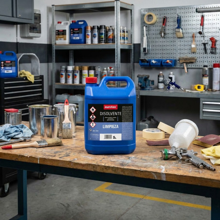 Questo contenitore contiene 5 litri di solvente detergente universale.