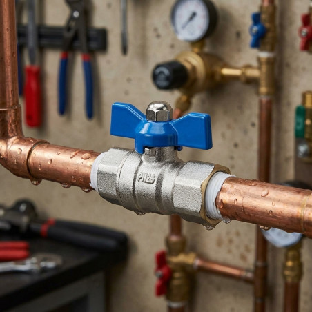 Valvola a sfera a farfalla da 1'' - Maniglia reversibile in metallo - Attacco standard PN25 - Valvola a sfera da 1'' Filettatura femmina 1. Valvola a sfera a farfalla con scelta di filettatura femmina-femmina per il flusso d'acqua. Metallico. Tasto blu o rosso. Garanzia di due anni, durevole e di qualità.