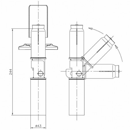Ancoraggio snodato senza piastra per scale piscina . Permette di rimuovere la scaletta dalla piscina sollevandola in posizione orizzontale. In acciaio inossidabile AISI-304 lucidato per scala in tubo Ø 43 mm.