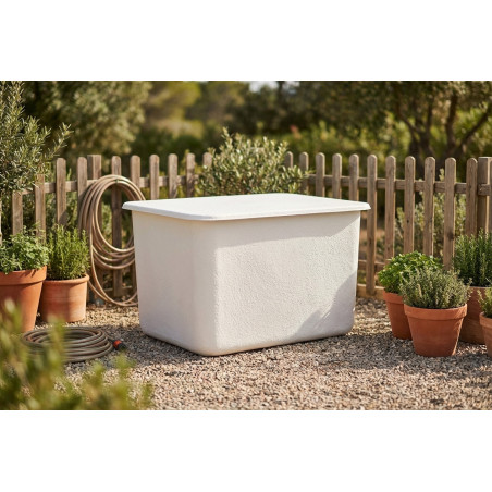 Serbatoio rettangolare in fibra di poliestere con coperchio da 200 L, 76x70x52 cm. Per acqua potabile e prodotti alimentari. Prodotto in Spagna con prodotti di alta qualità. Serbatoi rettangolari in poliestere rinforzato con fibra di vetro. Lunghezza 76 cm, Larghezza 70 cm, Altezza 52 cm. Capacità esatta 210 litri. Intervalli di temperatura che consentono tra -30º C e 60º C. Non conferiscono odore né sapore al contenuto. Può contenere prodotti alimentari. Anticorrosivo. Si consiglia di pulire il serbatoio prima dell'uso. Per installazione su una superficie completamente piana. Include copertura.