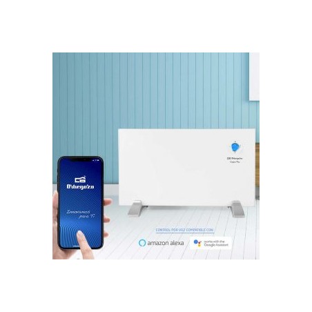 Potenza pannello radiante: 1000 W. Connessione WiFi wireless tramite APP. Programmazione giornaliera e settimanale, a fasce orarie. Tre opzioni di funzionamento: comfort, eco e antigelo. Funzione di rilevamento finestra aperta. Ottimizza il consumo energetico. Convezione e diffusione rapida del calore. Intervallo di temperatura: 7°C - 35°C. Resistenza dell'alluminio. Telecomando. Limitatore termico di sicurezza. Funzione di blocco bambini. Display digitale LCD. Controllo tattile. Supporto a parete e a pavimento (include strumenti di installazione) Installazione semplice. Sezionatore totale. Collegamento: 230 V ~ 50 Hz. Misure (larghezza x altezza x profondità): 79 x 38 x 5,8 cm