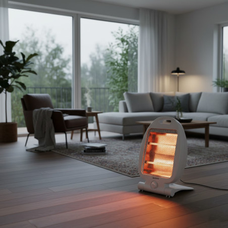 Stufa con due livelli di temperatura, maniglia per il trasporto e sistema di sicurezza. Stufa dal design compatto e moderno . E' dotato di un sistema di sicurezza antiribaltamento. Riscalda uniformemente. Include una maniglia per il trasporto sulla parte superiore. 2 livelli di temperatura 400 e 800 W, quindi è caratterizzato dal risparmio energetico. Voltaggio 220-240V, 50/60Hz.