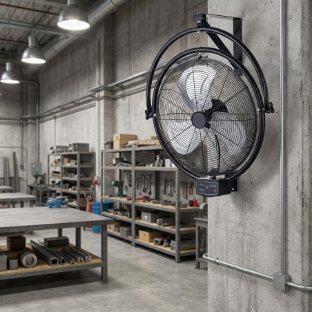 Potenti prestazioni di ventilazione Questo ventilatore da parete è dotato di un motore da 120 W, che offre un flusso d'aria costante ed efficiente. Ideale per mantenere freschi e ben ventilati grandi spazi come officine, magazzini o aree industriali, anche nelle giornate più calde. Goditi un ambiente piacevole e confortevole in ogni momento