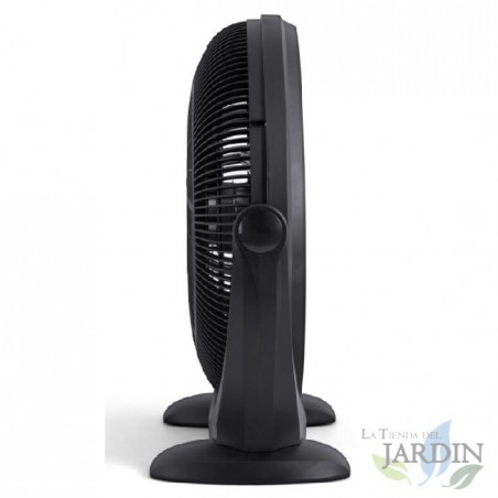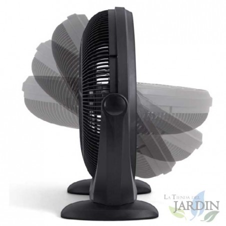 Dimensione lama grande: 50 cm. Colore nero. 3 velocità di ventilazione. Griglia protettiva. Ottimo flusso d'aria. Inclinazione regolabile. Base stabile. Maniglia per il trasporto. Potenza: 80 W