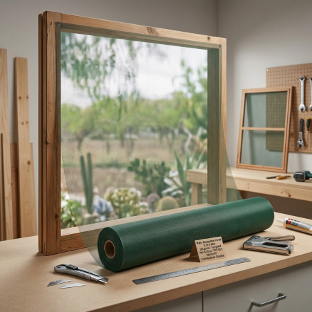 Zanzariera verde scuro da 0,8 x 30 metri, realizzata in fibra di vetro da 120 g/m². Ideale per la protezione da zanzare e insetti.