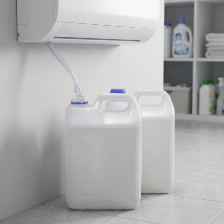 Pacote com dois tambores condensadores de ar condicionado de 5 litros. Jarras plásticas de 5 litros de qualidade alimentar para armazenamento e transporte.