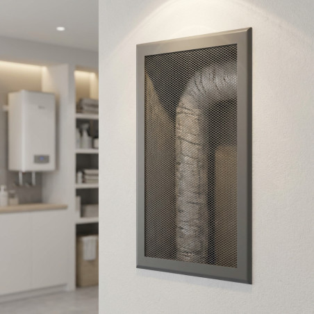 A grelha de ventilação não só contribui para a qualidade do ar interior, prevenindo a acumulação de humidade e odores, como também confere um toque de modernidade e organização ao seu espaço. O seu acabamento cinzento é versátil e complementa facilmente uma vasta gama de estilos de decoração, do industrial ao minimalista. A estrutura metálica garante uma resistência superior à deformação e a danos, ao contrário das opções em plástico.
