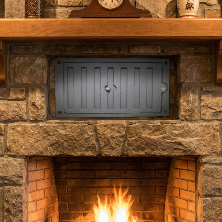 Grelha de ventilação em ferro fundido 22x11 cm . Elegante e funcional, ideal para lareiras e ventilação. Seu design decorativo é ajustável para um controle ideal do fluxo de ar. Fácil instalação e alta durabilidade.