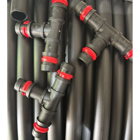 O conector em T para irrigação por gotejamento de 20 mm é feito de polipropileno de alta qualidade.