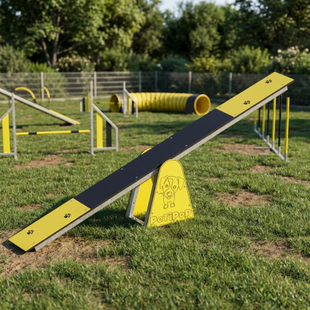 Este equipamento de agilidade é ideal para cães de todas as raças e tamanhos, oferecendo uma experiência de treino dinâmica e estimulante. A execução correta dos movimentos na gangorra ajuda a desenvolver a propriocepção, a concentração e a obediência — habilidades cruciais para qualquer atleta canino. Incentiva o exercício regular e a brincadeira ativa, contribuindo para um estilo de vida saudável para o seu animal de estimação.