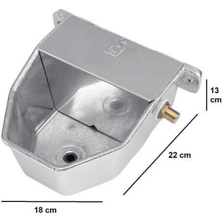 Bebedouro para cães que funciona com um nível de água constante, regulável por uma válvula de alta pressão. Pode ser fixado na parede e possui um tampão para esvaziamento e limpeza. Dimensões: 18 x 22 x 13 cm. Bebedouro de alta qualidade, fabricado na Espanha.