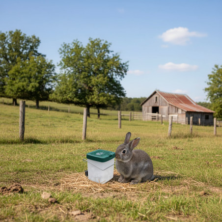 Bebedouro automático para coelhos – Equipado com um bico de aço inoxidável para fornecer um fluxo constante de água limpa e fresca, sem desperdício.