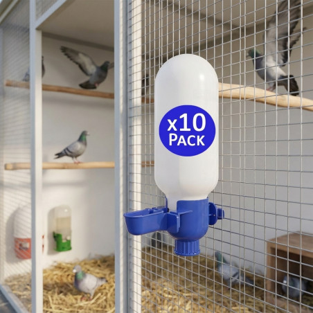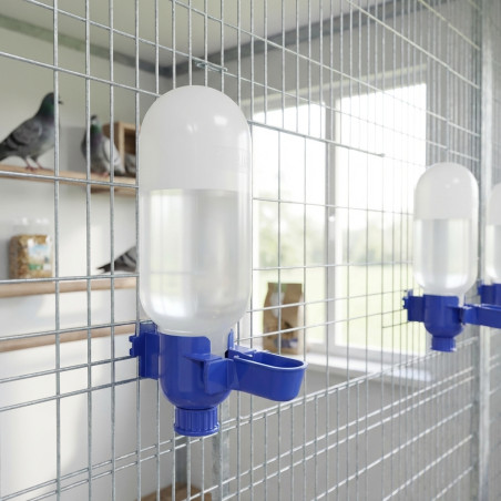 Bebedouro automático para pássaros, fabricado em plástico 100% polido. Seu recipiente é projetado para todos os tipos de pássaros e seu formato inclinado permite que quaisquer detritos caiam na tampa inferior facilmente removível, preservando a qualidade da água. Abas na parte inferior do recipiente fixam o bebedouro à gaiola para o funcionamento adequado. Capacidade: 0,5 litros.