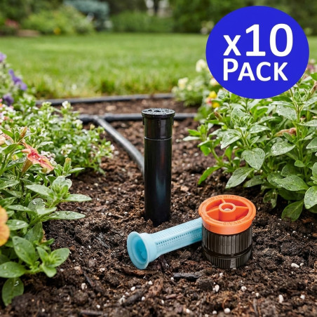 O pacote inclui 10 bicos difusores, permitindo que você tenha peças de reposição disponíveis para suas necessidades de irrigação.