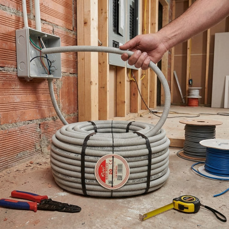 O tubo corrugado é resistente à compressão, não emite substâncias tóxicas e possui certificações de qualidade.
