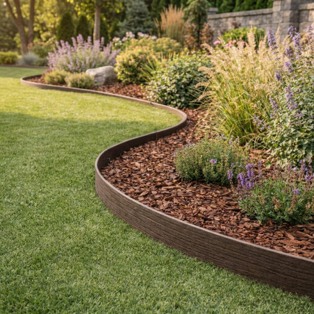 A instalação é simples e versátil, seja para delimitar canteiros de flores, criar caminhos ou separar áreas de gramado de cascalho. Sua flexibilidade permite seguir sem esforço o formato desejado, enquanto sua resistência garante uma barreira firme e duradoura contra a propagação da grama e a erosão do solo. O acabamento sutil em marrom natural combina perfeitamente com uma ampla gama de estilos de paisagismo, adicionando um toque de elegância rústica ao seu ambiente.