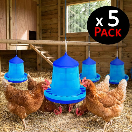 Comedouro de plástico para galinhas e outras aves. Feito de plástico durável, o que o torna leve. Pode ser pendurado facilmente. Cor azul.